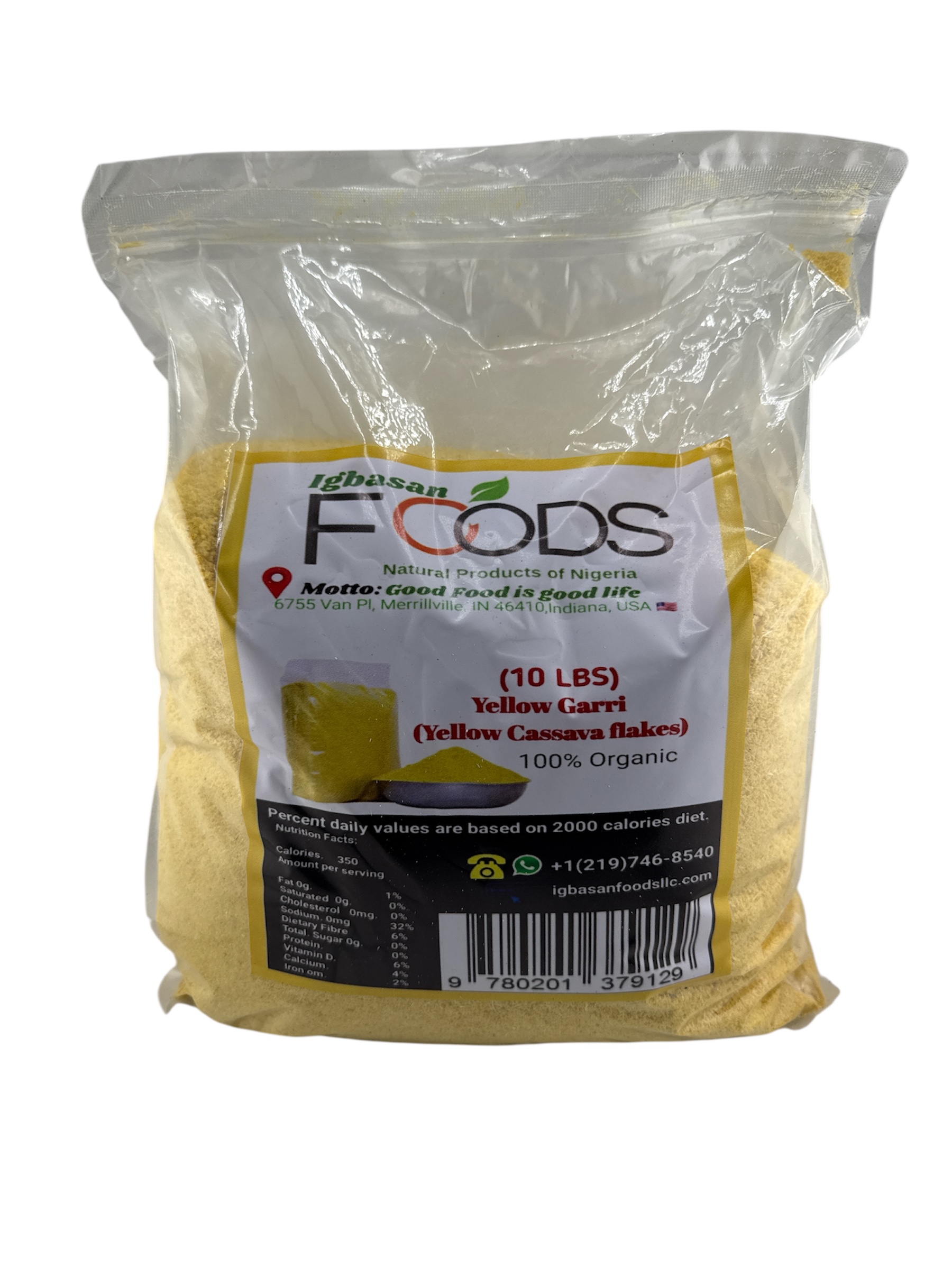 Bring home the authentic taste of Nigeria with our Premium Yellow Garri. Made from carefully processed cassava and expertly enriched with palm oil, this garri offers a beautiful golden color and a rich, slightly earthy flavor that elevates every meal.